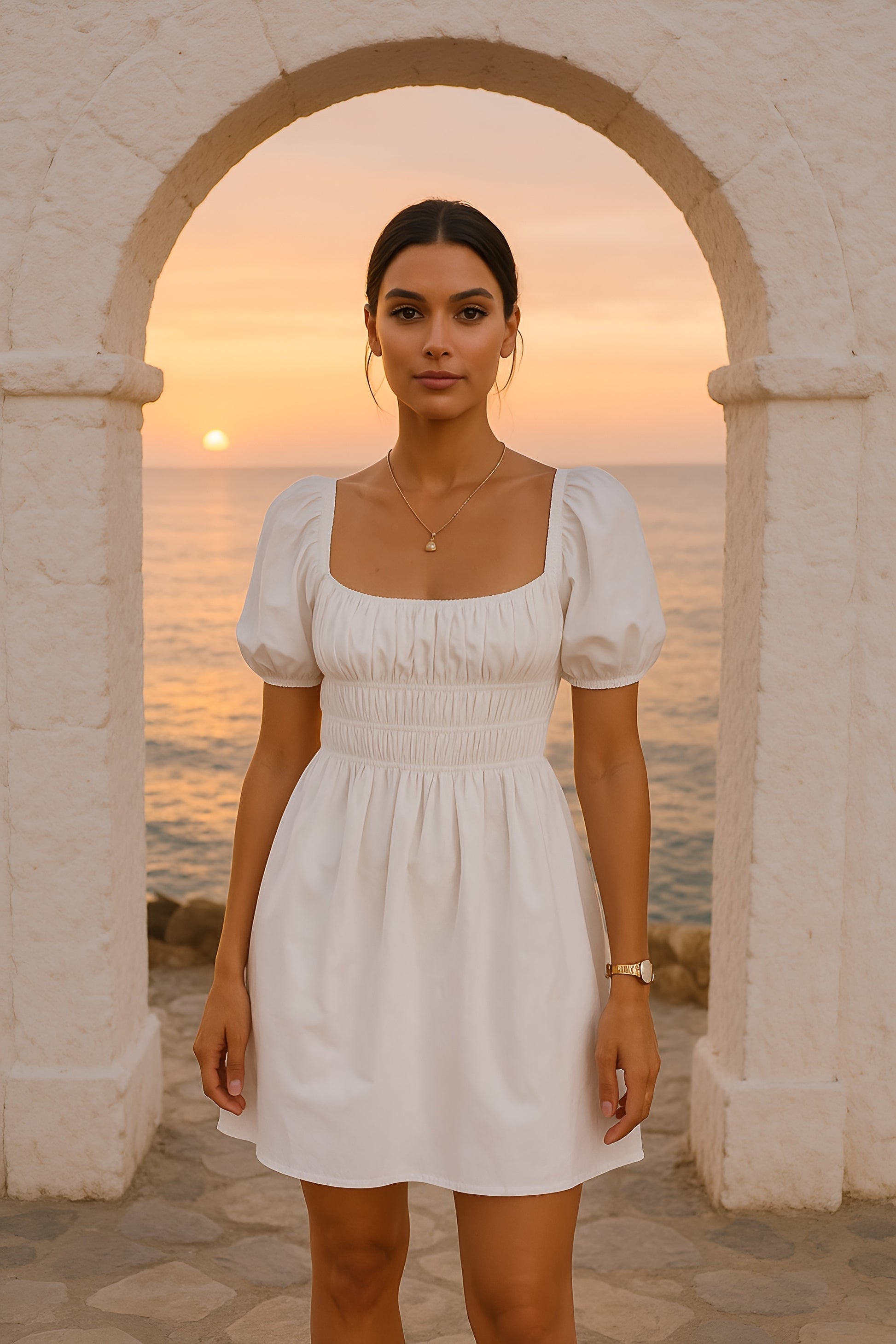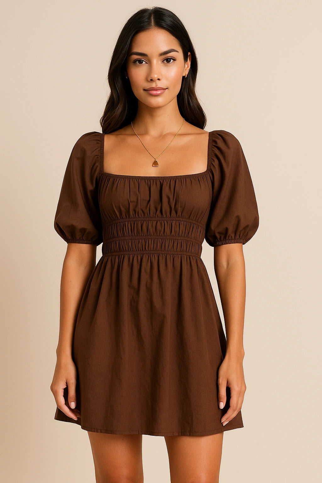 Sweet and structured with a modern edge. This dress is made from soft, breathable cotton and features a square neckline, voluminous puff sleeves, and a smocked bodice for a flattering, cinched silhouette. Effortlessly feminine and endlessly wearable — perfect for brunch dates, garden parties, or sunny strolls.